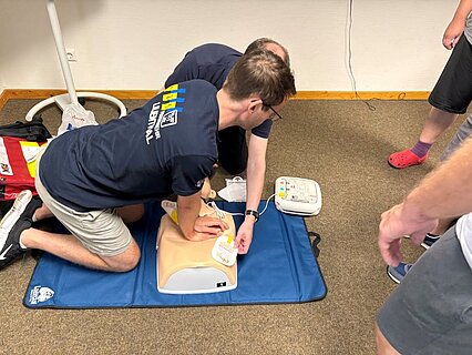 Bei einer Alarmierung mit dem Stichwort „Reanimation“ wird die Feuerwehr parallel zum Rettungsdienst und den mobilen Rettern alarmiert. Nur ausgebildete Mitglieder der AED-Gruppe rücken aus. Ist ein Feuerwehrmitglied gleichzeitig als Mobiler Retter alarmiert, erfolgt die Anfahrt direkt zur Einsatzstelle – nicht zum Feuerwehrhaus.