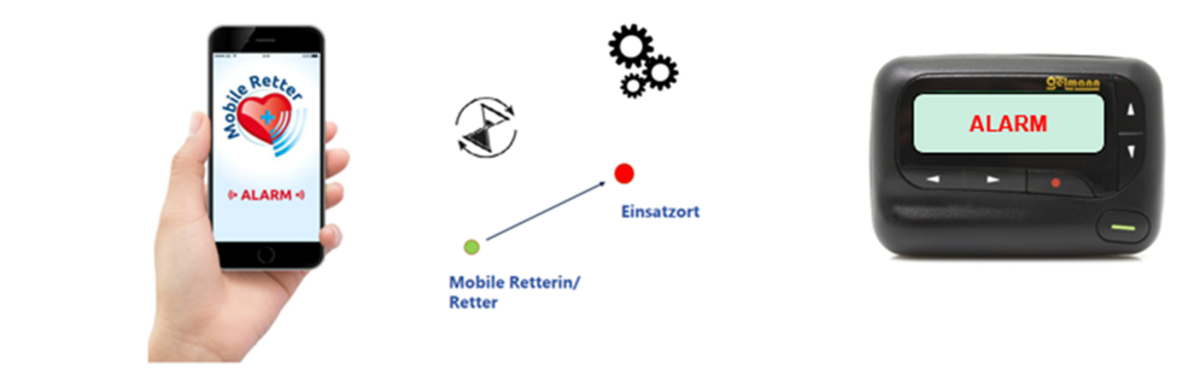 1. Schnelligkeit: Durch die frühzeitige Alarmierung der Feuerwehr sollen qualifizierte Ersthelfer schnellstmöglich am Einsatzort eintreffen – entweder zur Unterstützung von bereits eingetroffenen Mobilen Rettern oder, falls diese nicht verfügbar sind, als erste Maßnahme bis zum Eintreffen des Rettungsdienstes. Der Fokus liegt hier auf dem Basic Life Support (BLS) wie z.B. Durchführung von Thoraxkompressionen, Beutel-Masken-Beatmung sowie den Einsatz eines automatisierten externen Defibrillators (AED).