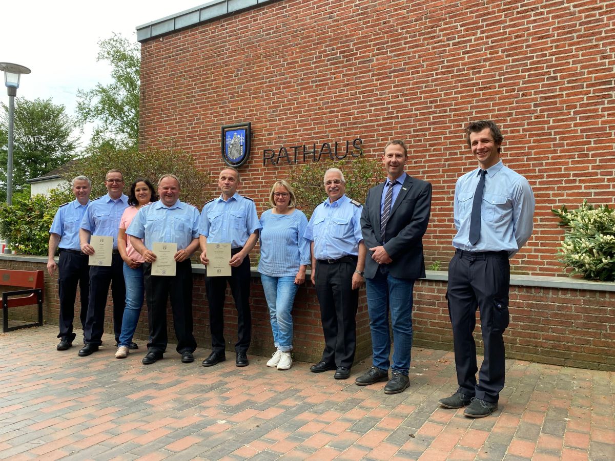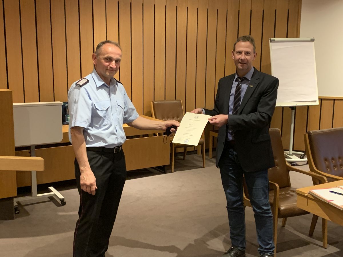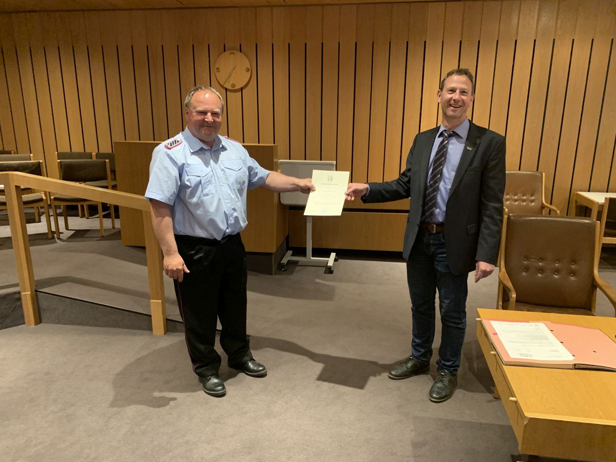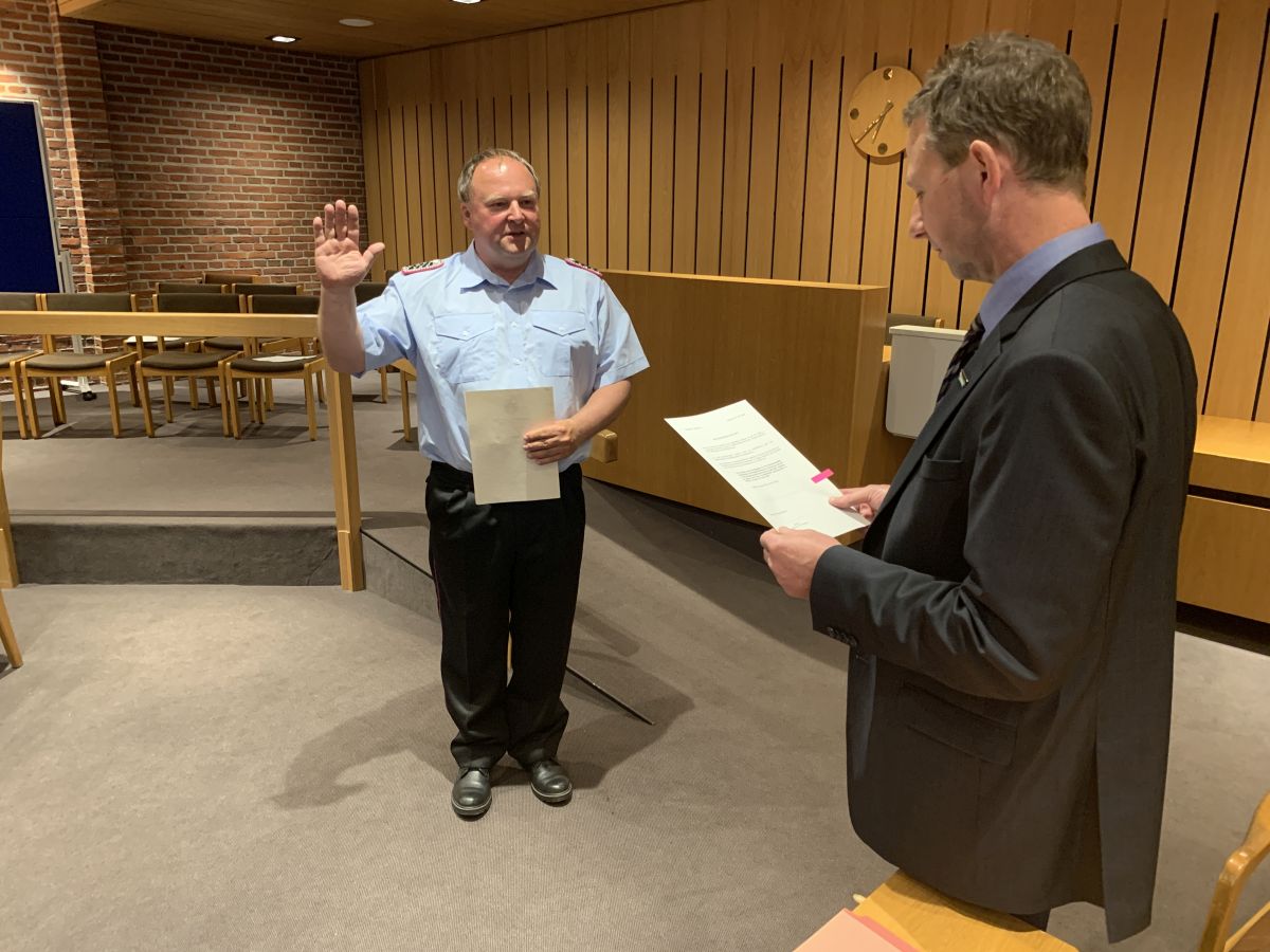 Nach nunmehr erfolgtem positivem Ratsbeschluss wurde am 16.05.2022 im Rahmen einer kleinen Feierstunde im Rathaus der Gemeinde Lilienthal Ture Schönebeck durch den allgemeinen Vertreter des Bürgermeisters Jürgen Weinert mit Wirkung zum 01.06.2022 in das Ehrenbeamtenverhältnis für die Dauer von sechs Jahren zum stellvertretenden Ortsbrandmeister ernannt. Weiterhin wurde er auch, wie alle Ortsbrandmeister und stellvertretende Ortsbrandmeister der Gemeinde Lilienthal, zum Vollzugsbeamten im Feuerwehrwesen bestellt, um als Einsatzleiter Handlungen nach dem Niedersächsischen Polizei- und Ordnungsbehördengesetz (NPOG) durchführen zu können. Ture Schönebeck ist 57 Jahre alt und bringt umfangreiche Erfahrung aus dem Feuerwehrwesen mit. Der studierte Diplom-Ingenieur hat eine Ausbildung für den höheren feuerwehrtechnischen Dienst absolviert und war lange Zeit in leitender Funktion als Berufsfeuerwehrmann tätig. Auch ist er immer noch (Doppel-)Mitglied seiner ehrenamtlichen „Heimat-Feuerwehr“ Bad Harzburg. Durch seine jetzige berufliche Tätigkeit bei einem örtlichen Ingenieurunternehmen steht er auch tagsüber oft für Einsätze zur Verfügung.