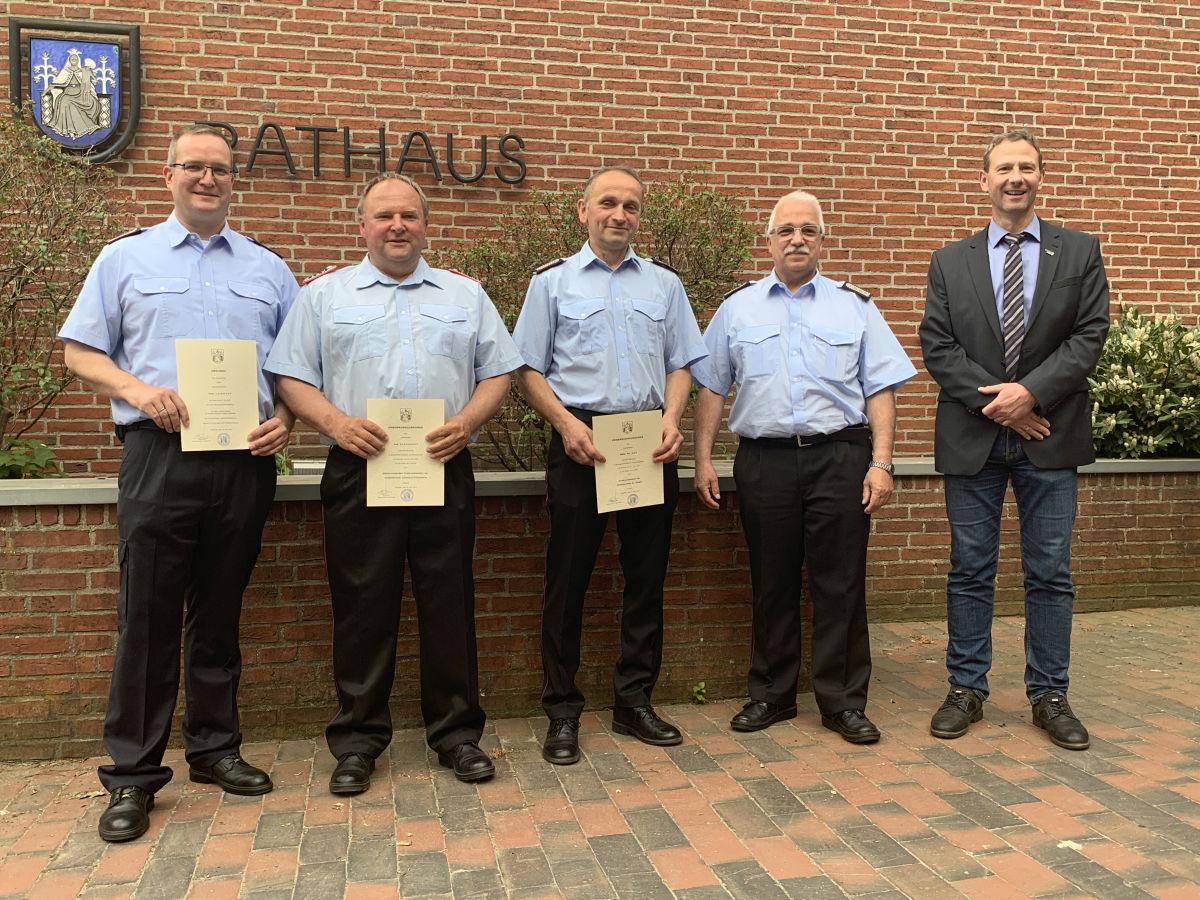 Weiterhin wurde im Rahmen der Feierlichkeiten der langjährige Ortsbrandmeister der Ortsfeuerwehr Sankt Jürgen erneut in das Ehrenbeamtenverhältnis als Ortsbrandmeister berufen. Detlef Murken führt das Amt mit großer Erfahrung ebenfalls für die nächsten sechs Jahre erneut aus. Hierzu gratulieren wir recht herzlich!
