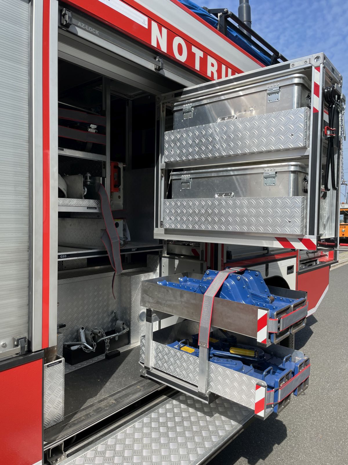 Dafür hat uns die BSAG mit technischer Ausrüstung, die auf dem Rüstwagen verlastet ist, und mit Wissen, das regelmäßig aufgefrischt wird, versorgt. Wir haben sowohl Material zum Anheben von Bahnen als auch zum Erden der Oberleitung, um sicher arbeiten zu können. Letzteres kann übrigens durchaus auch bei anderen Einsätzen entlang der Linie 4 vonnöten sein, da jedes sich nähern des Fahrdrahtes von kürzer als einem Meter tödlich enden kann.