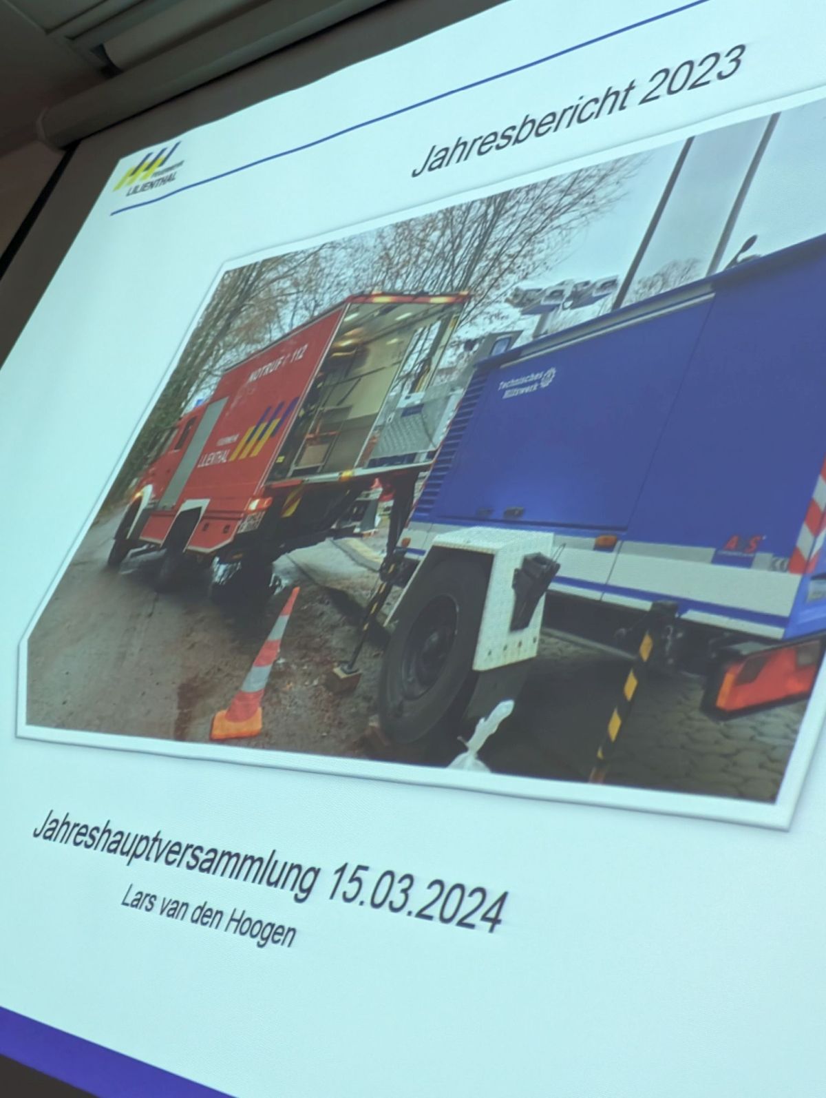 Es folgte der Jahresbericht des OrtsBm. Lars van den Hoogen konnte berichten, dass im letzten Jahr viel für die Zukunft getan wurde. So konnte die Gemeinde das ehemalige Riohl-Chemie-Gebäude kaufen, um Platz für die Belange der Gemeindefeuerwehr zu gewinnen, was auch unserer Ortsfeuerwehr zu Gute kommt. Ein neuere, vollwertiger MTW (mit Funk- und Sondersignalanlage) konnte ebenfalls beschafft werden.