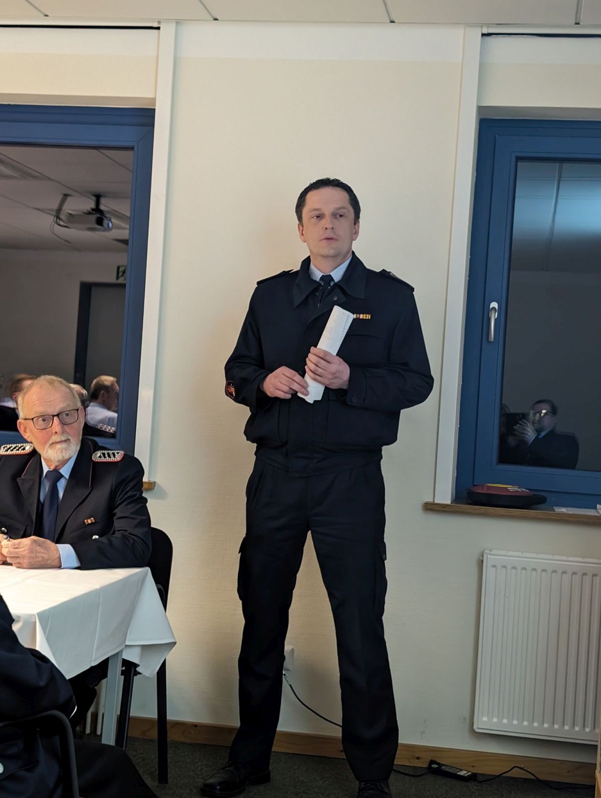 Nicht nur deshalb konnte Ortsbrandmeister (OrtsBm) Lars van den Hoogen neben einigen Gästen auf einen bis fast zum letzten Platz gefüllten Raum blicken. Neben den aktiven Mitgliedern und den Kameraden der Altersabteilung waren Bürgermeister Kim Fürwentsches, sein Stellvertreter und Fachbereichsleiter Jürgen Weinert, Kreisbrandmeister Jan Hinken, Gemeindebrandmeister Andreas Hensel und sein Stellvertreter Kai Garbade, der Betreuer der Alterskameraden auf Gemeindeebene Hans-Hermann Runge sowie Johannes Kessels von der Wümme-Zeitung erschienen.