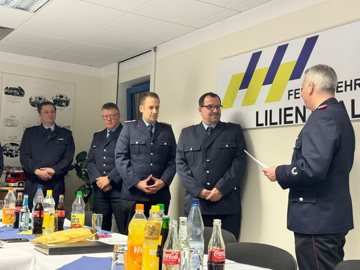 Im Anschluss an seinen Bericht beförderte er Birol Belontschak und Ingmar Ebling zu Löschmeistern, Christian Krüger zum Oberlöschmeister, Kay Müller zum Hauptlöschmeister sowie Andre Cordes und Ingo Stelljes-Subarew zu Brandmeistern.