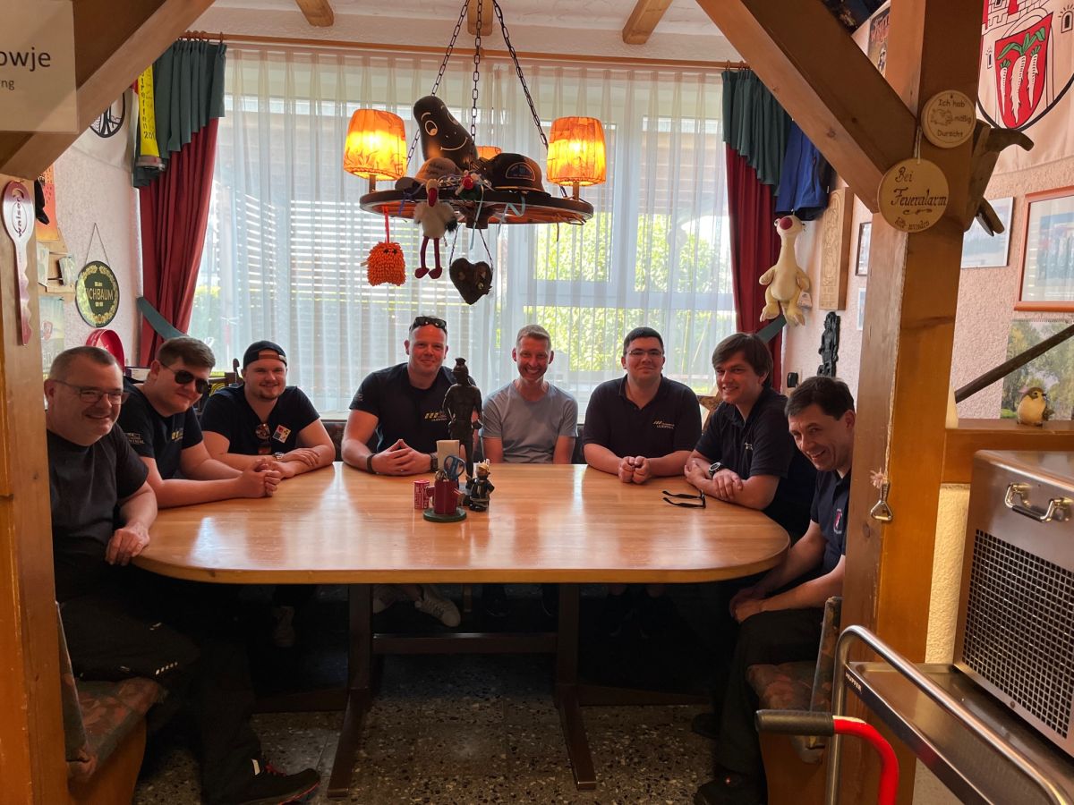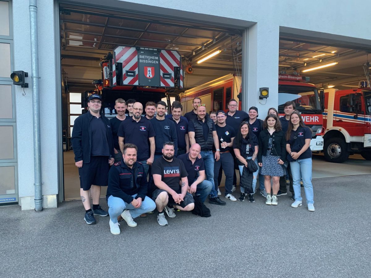 Kurz nach dem Mittag erreichten sie ihr Ziel und wurden herzlich von den Kameradinnen und Kameraden der Feuerwehr Bietigheim-Bissingen empfangen. Nach einer ausgiebigen Führung durch das Feuerwehrhaus Bietigheim sowie einer zünftigen Brotzeit ging es weiter zum Feuerwehrhaus im Ortsteil Bissingen. Auch hier gab es eine Führung, bei der besonders das mit viel Liebe eingerichtete Feuerwehrmuseum im Keller des Feuerwehrhauses sowie der Abrollcontainer in Erinnerung blieben. In der gemütlichen „Feuerwehrstube“ wurde dann noch über den einen oder anderen Einsatz berichtet.