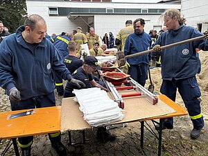 In mehreren Stationen wurden theoretische Grundlagen zur Hochwasserentstehung und Einsatzplanung vermittelt, darunter die Analyse des Gewässersystems der Wümme rund um den „Borgfelder Trichter“ und die Rückschau auf das Weihnachtshochwasser 2023/2024. Praktisch geübt wurde insbesondere der Umgang mit Sandsäcken und der Aufbau eines Sandsackfüllplatzes.