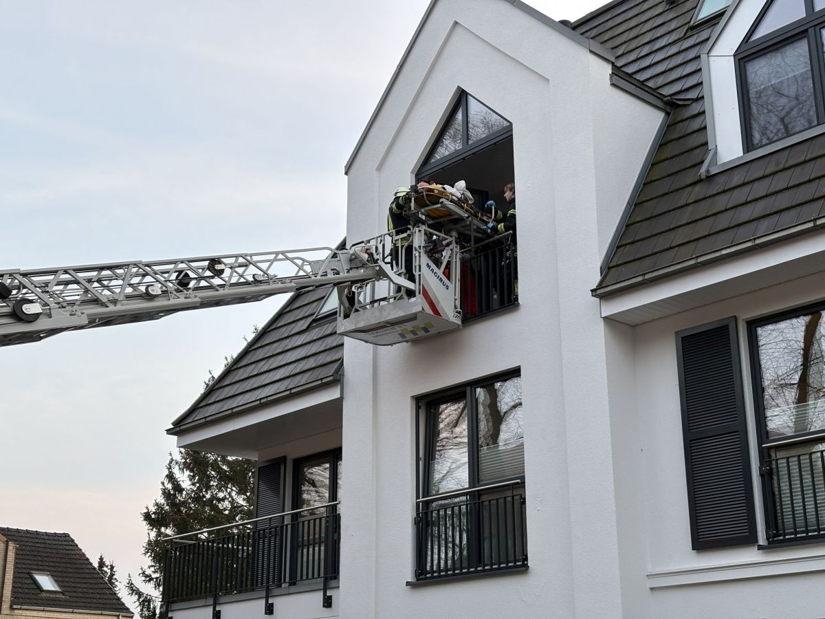 Patiententransport mit Drehleiter und Tragehilfe