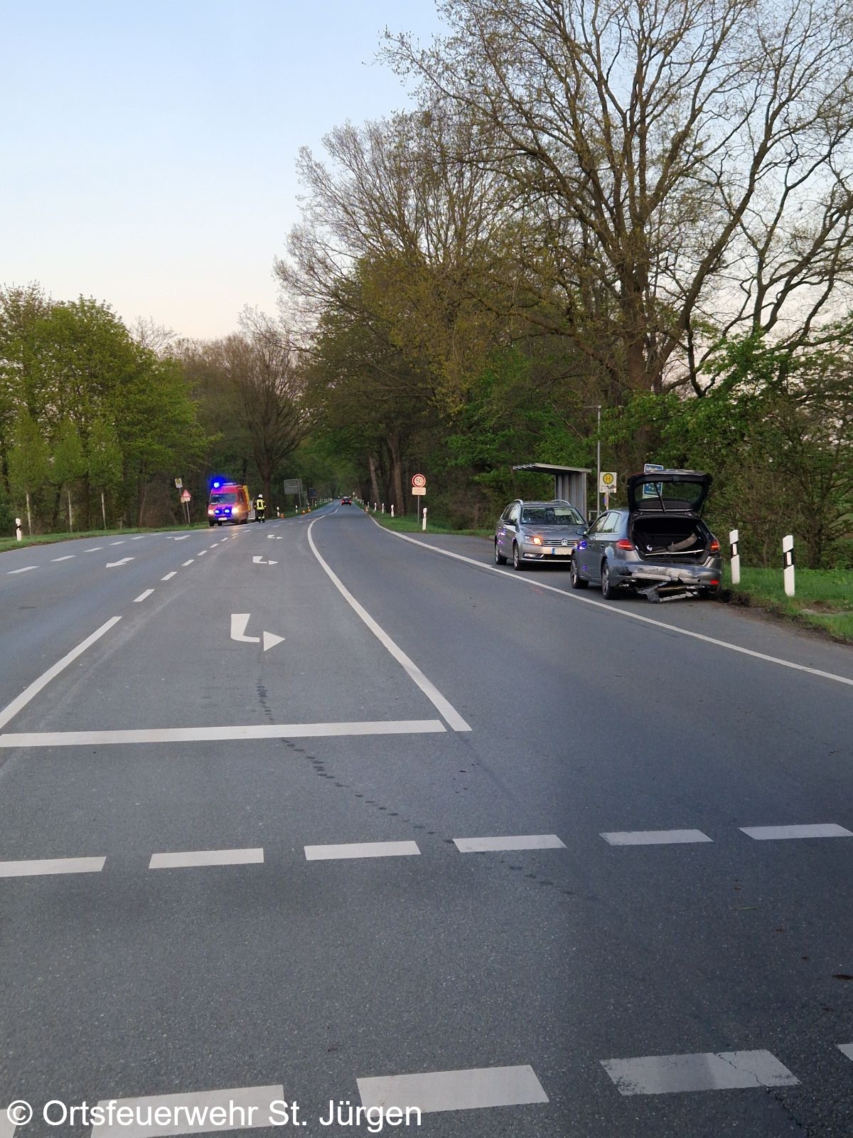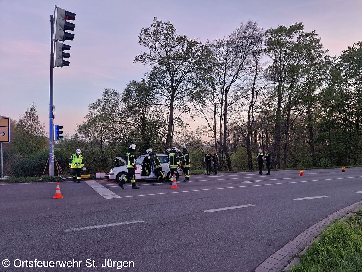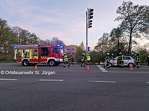 | Einsatzbericht: | An der Kreuzung K8/K9/Kirchweg ereignete sich ein Verkehrunfall mit insgesamt neun verletzten Personen. Der Fahrer eines PKW musste an der Ampel halten, der Fahrer eines nachfolgenden PKW bemerkte dies zu spät und fuhr auf. Beide Fahrzeuge waren mit jeweils fünf Persomen besetzt. Bis auf einen der Farher verletzten sich alle leicht. Mehrere Verletzte wurden von insgesamt drei Rettungswagen in Krankenhäuser gebracht, die restlichen Personen wurden abgeholt. Die erste Absicherung der Unfallstelle und der Brandschutz wurden von der Orstfeuerwehr LIlienthal/Falkenberg vorgenommen, da diese zufällig mit zwei Fahrzeugen auf die Unfallstelle zukam. Im weiteren Verlauf wurde die Einsatzstelle von der Orstfeuerwehr St. Jürge übernommen und die lilienthaler Fahrzeuge wurden aus dem Einsatz entlasssen. Nachdem die Verletzten abtransportiert waren und die Polizei die Unfallaufnahme angeschlossen hatte, wurde die Unfallstelle grob gereinigt und einer der PKW durch die Feuerwehr in den Seitenraum verbracht. Anschließend wurde die Einsatzstelle an die Polizei übergeben. |